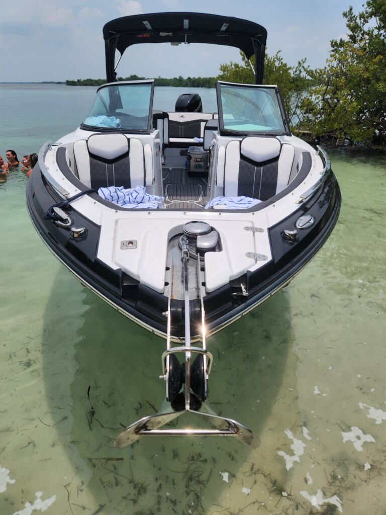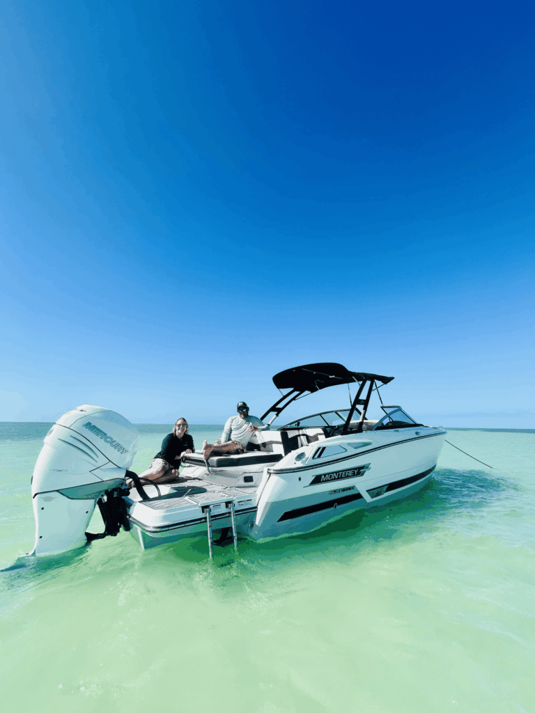 A versatile and stylish boat that comfortably accommodates up to 12 people. Perfect for group outings, bachelor/bachelorette parties, family gatherings, work events, entertaining clients, or romantic cruises. Ideal for beach days, sandbar visits, sunset cruises, and dockside dining with a blend of speed, comfort, and elegance.