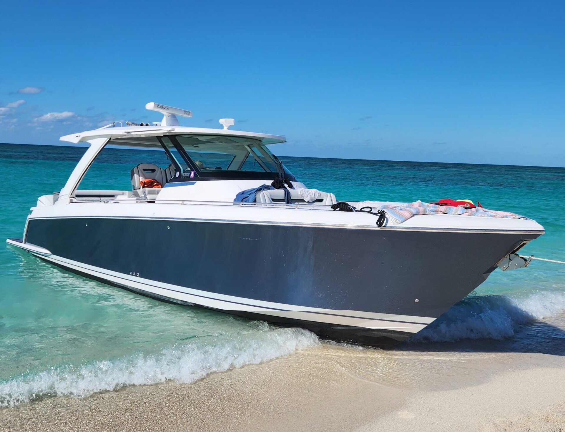 This boat features Tiara’s signature open-concept layout, complete with wrap-around bow seating, a spacious aft lounge, and a mid-cockpit social zone that easily converts for dining or relaxation. Triple Yamaha outboards provide impressive power and a remarkably smooth ride, allowing us to whisk guests to destinations quickly and comfortably. With its integrated swim platform, onboard galley, and premium sound system, the 38LS delivers everything needed for a perfect day on the water.